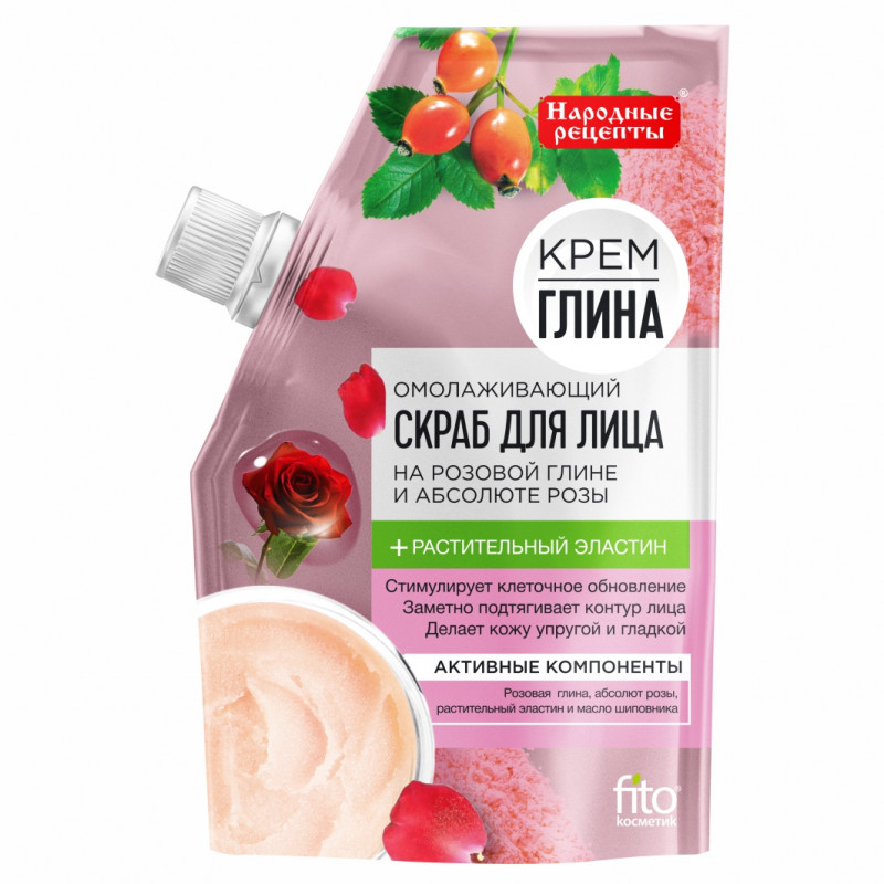 Скраб для лица Народные рецепты "Омолаживающий" создан на основе розовой глины и абсолюте розы.