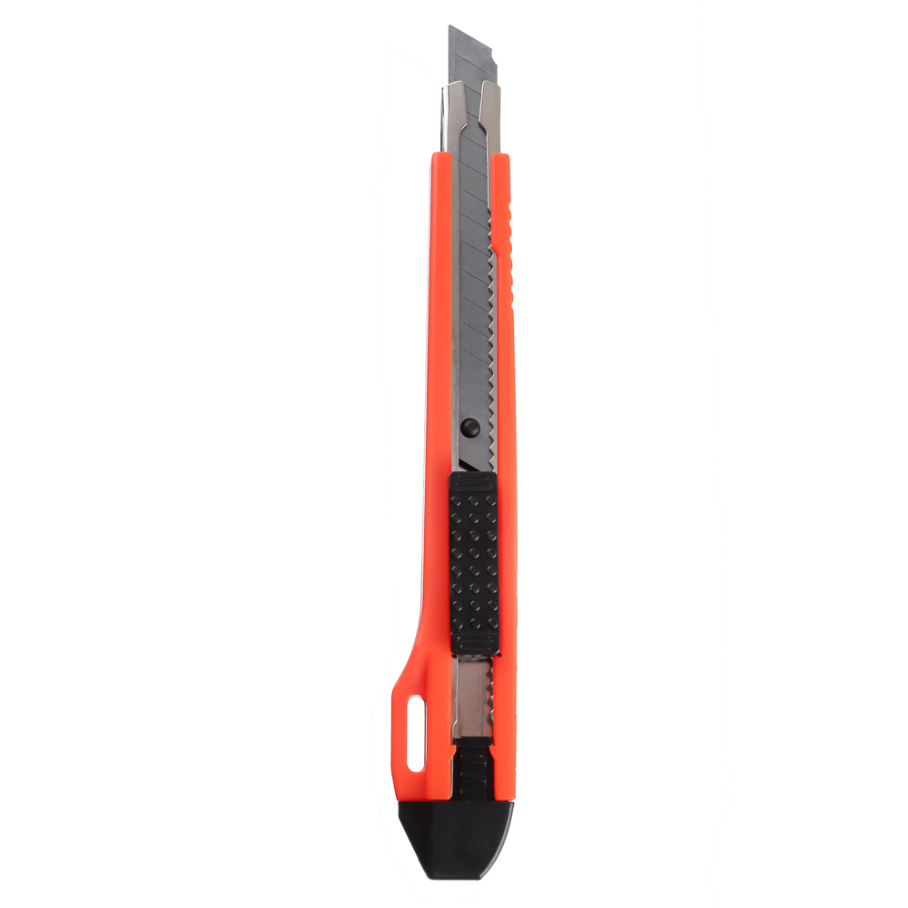 Оснащен прямоугольным стоппером для фиксации рабочего полотна. Острое и тонкое лезвие эффективно разрезает бумагу, монтажную ленту и некоторые виды строительных материалов.