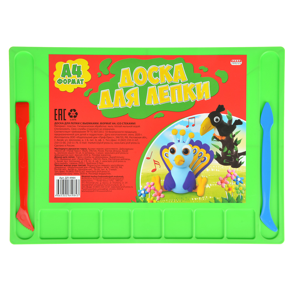 Набор для лепки 3 предмета: доска А4, 2 стека ДЛ-02П/ДЛ-4984