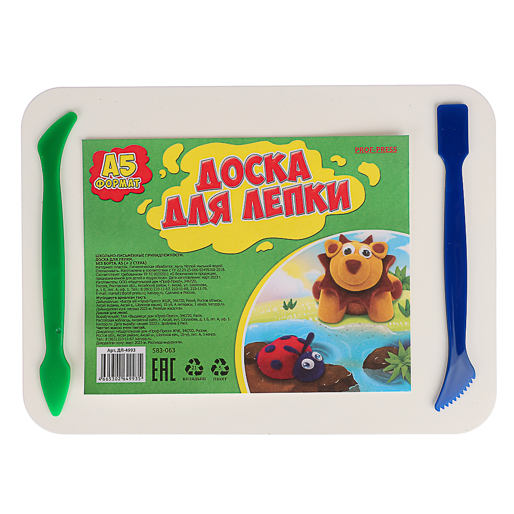 Набор для лепки, 3 предмета: доска А5, 2 стека, в пакете, арт. ДЛ-4993