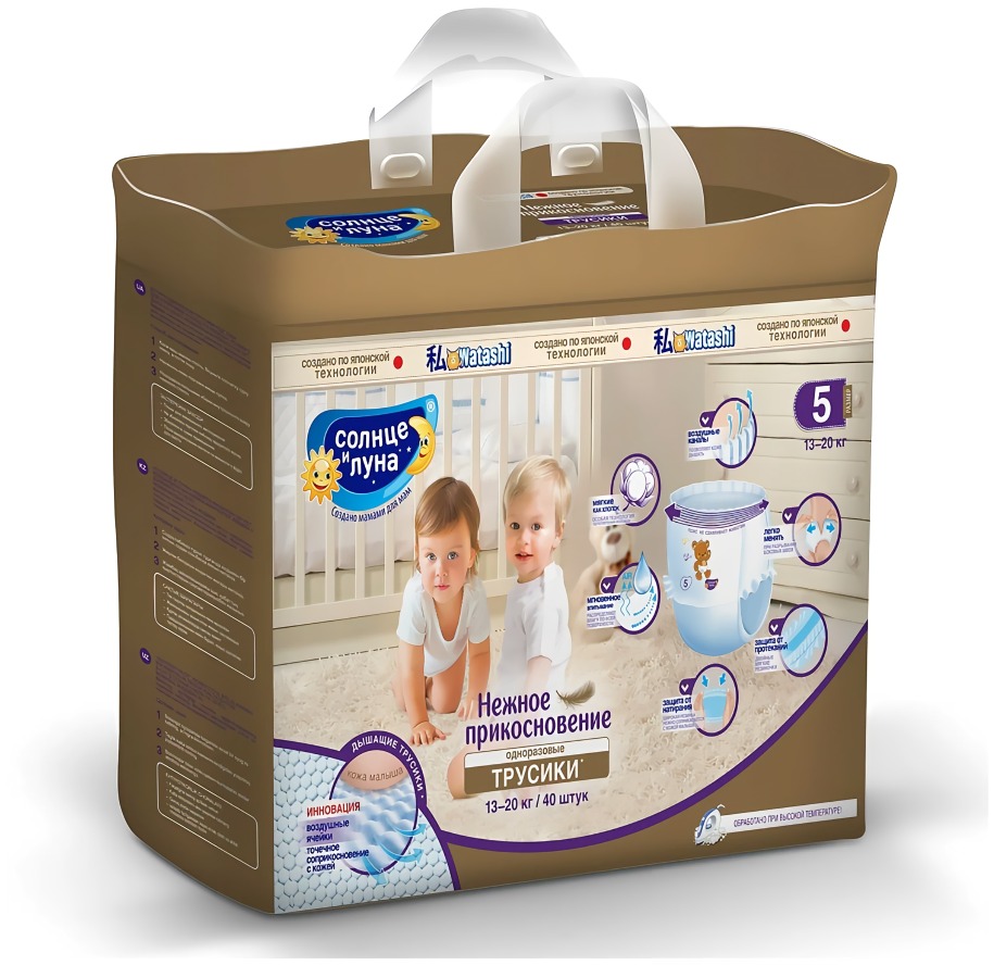 Солнце и луна подгузники-трусики Нежное прикосновение 5/XL 13-20кг 40шт