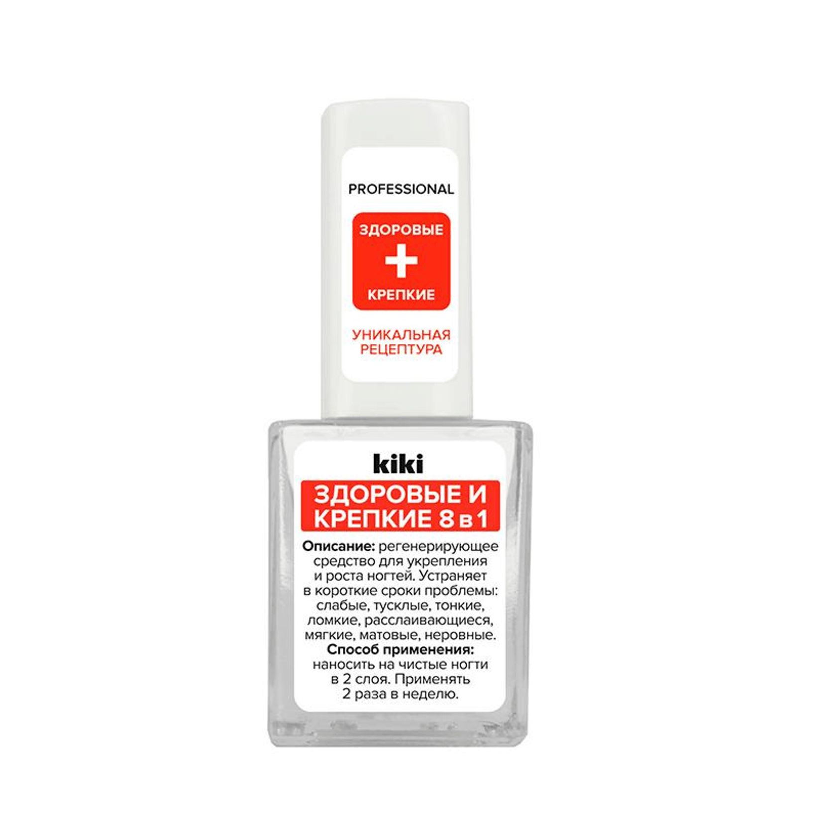 Средство "Здоровые и крепкие 8в1" от KIKI (Кики) устраняет в короткие сроки проблемы ногтей: слабость, тусклость, тонкость, ломкость, расслоение, мягкость, матовость, неровность.