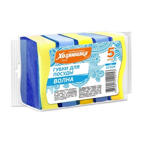 Губки для мытья посуды Хозяюшка Мила "Волна" предназначены для чистки посуды, раковин и плит.
