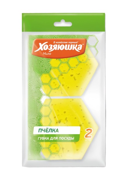 Губка для посуды Хозяюшка Мила "Пчелка" эффективно очищает поверхность посуды для приготовления.