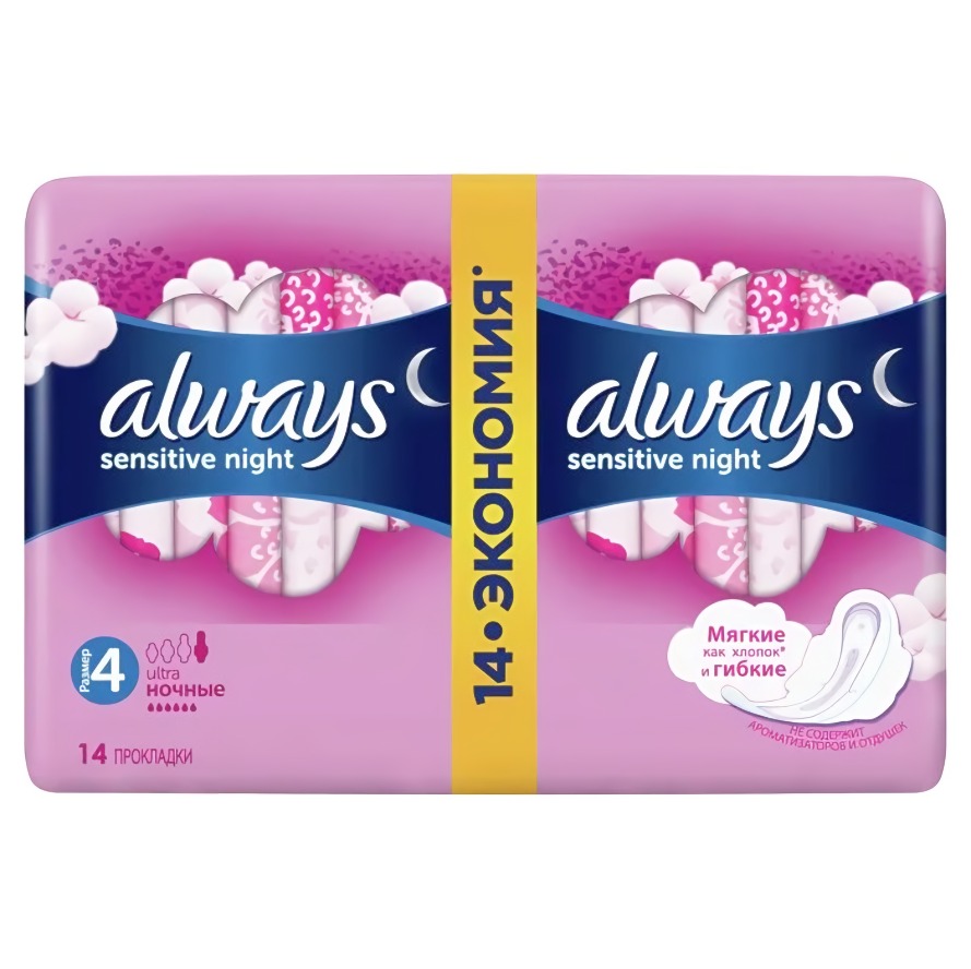 ALWAYS UltraSensitive Ультратонкие женские гигиенические прокладки NightDuo 14шт