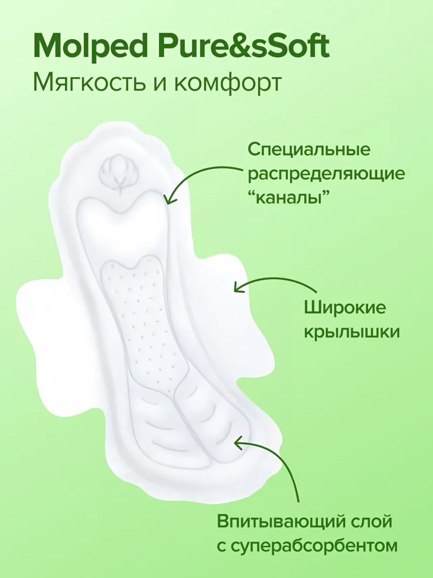 Molped ультратонкие прокладки pure soft с крылышками ночные