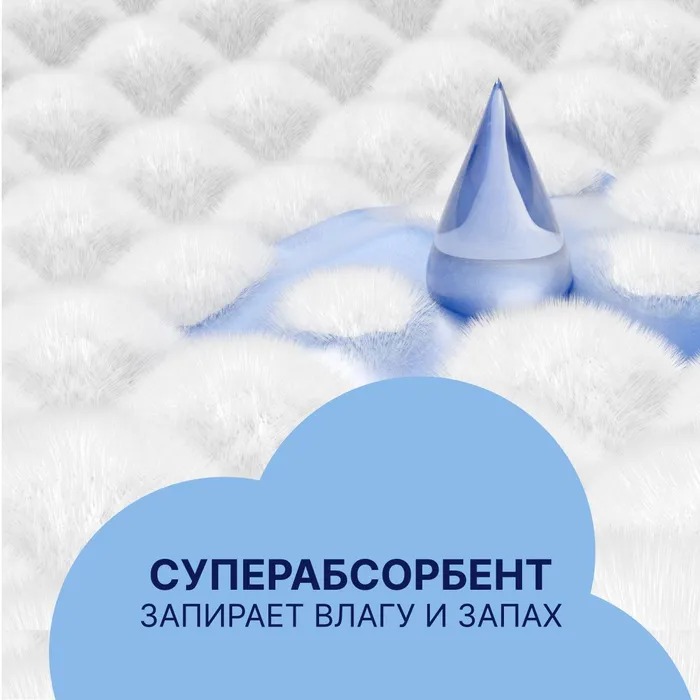 Суперабсорбент быстро превращает жидкость в гель, удерживая ее внутри и предотвращая появление неприятного запаха.