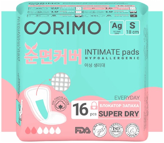 Ежедневные гигиенические женские прокладки "CORIMO" (Соримо) разработаны совместно с лабораторией в Южной Корее.
