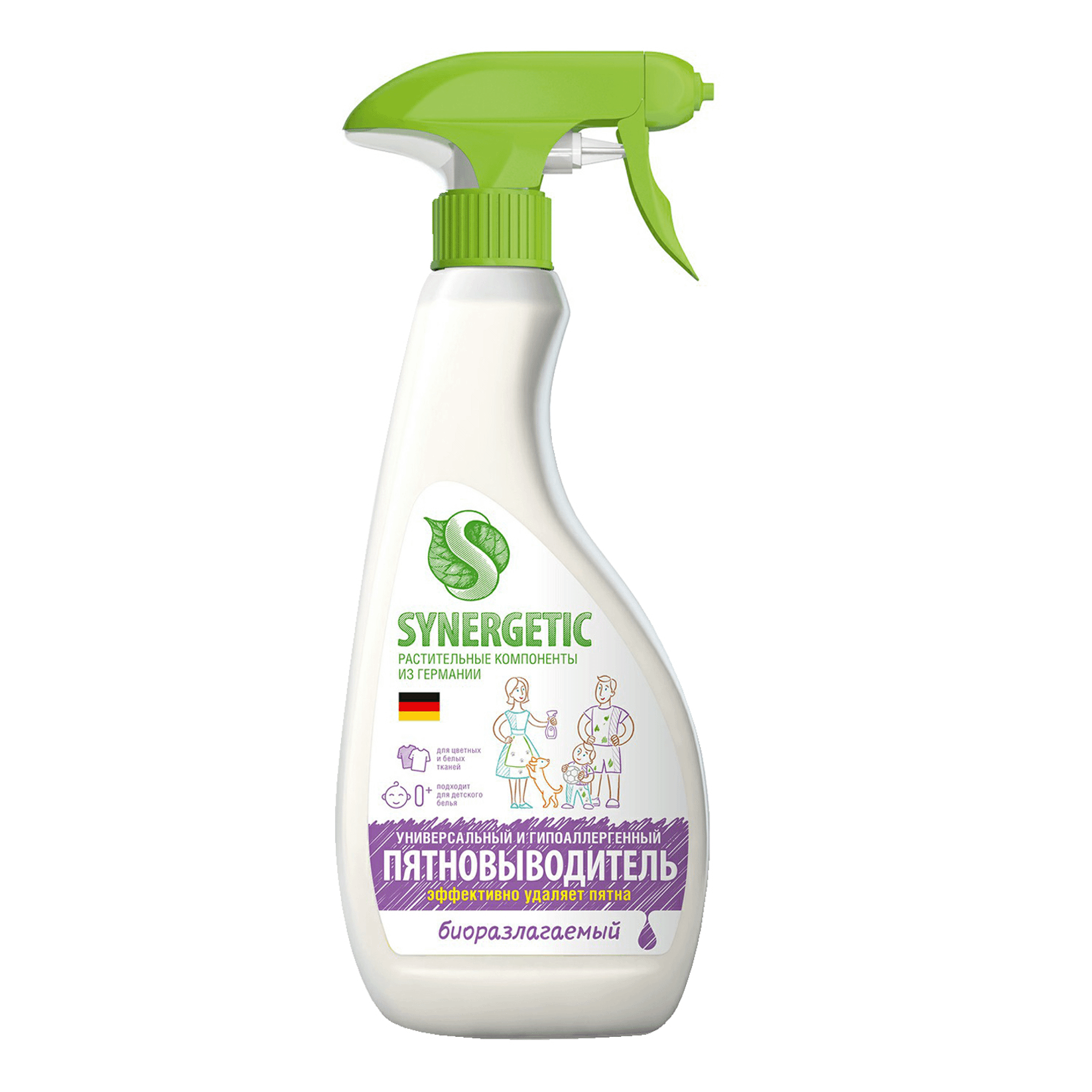 Биоразлагаемый универсальный пятновыводитель для предварительной обработки пятен Synergetic (Синергетик) подходит для цветного и белого белья из натуральных и синтетических тканей, для стирки детского белья.