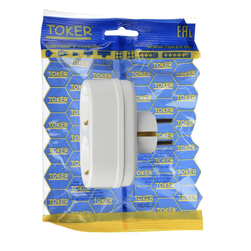 TOKER Разветвитель 2 гнезда с заземлением 250В