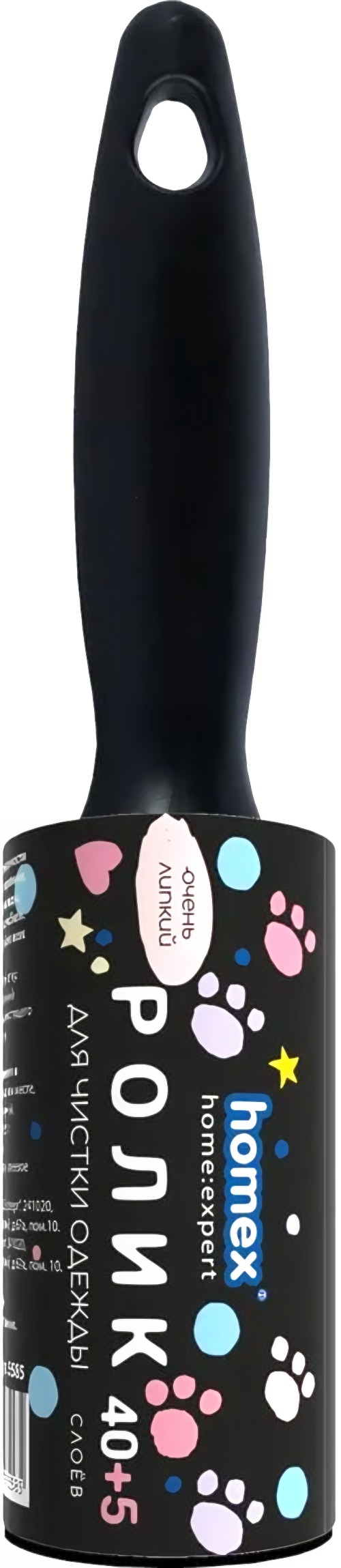Роллер для чистки одежды HOMEX (Хомекс) "Очень липкий" убирает ворсинки, нитки, пух, шерсть животных, мелкие крошки и обрывки бумаги.