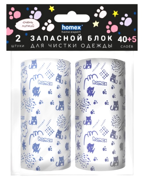 Ролик запасной для чистки одежды HOMEX (Хомекс) "Очень липкий" убирает ворсинки, нитки, пух, шерсть животных, мелкие крошки и обрывки бумаги.