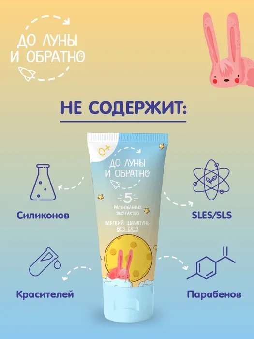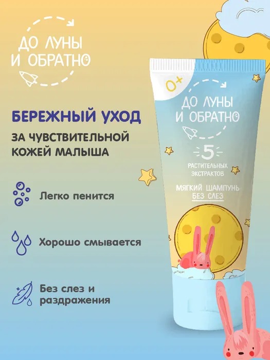Мягкий шампунь для волос без слез До Луны и Обратно предназначен для бережного ухода за волосами и нежной кожей головы вашего ребенка.