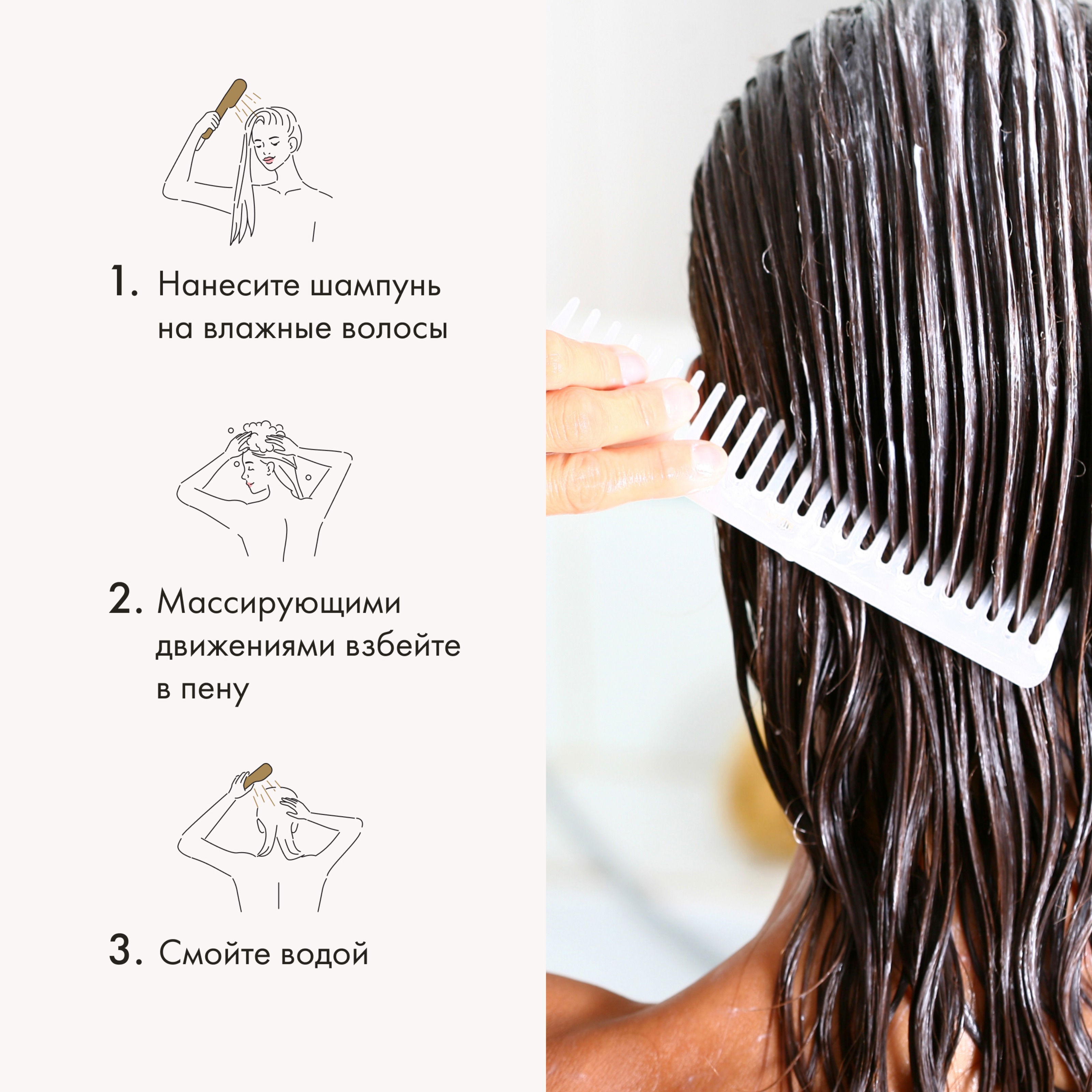 Способ применения: нанесите шампунь на влажные волосы, массирующими движениями взбейте в пену и смойте тёплой водой.