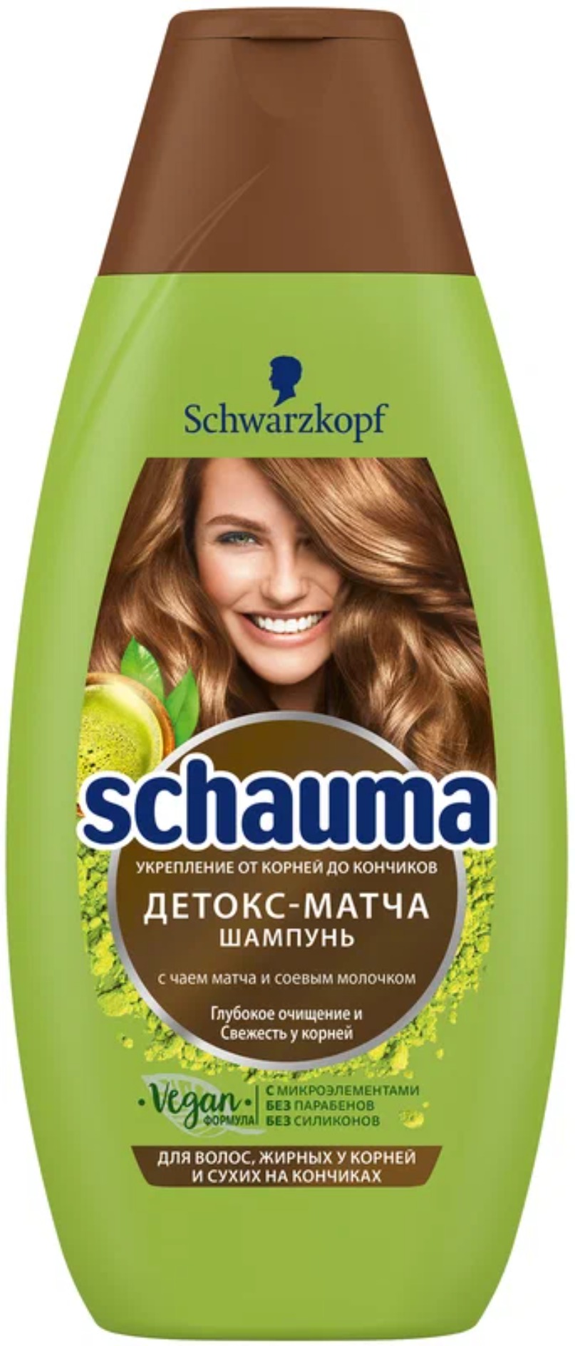 Шампунь "Детокс-Матча" представляет детокс-серию с чаем матча и соевым молочком для волос, жирных у корней и сухих на кончиках.