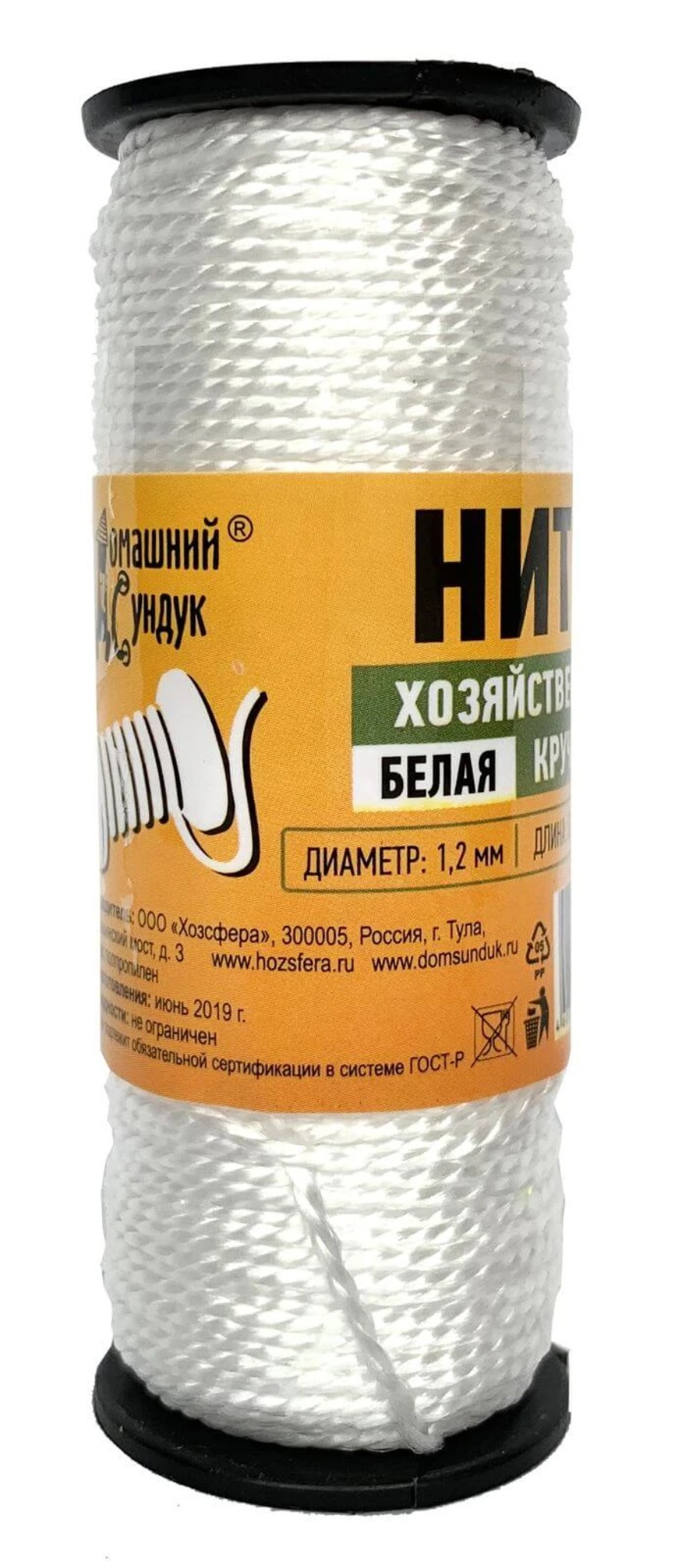 "ДС" Нить хозяйственная крученая D-1.2мм L-50м белая ДС-275