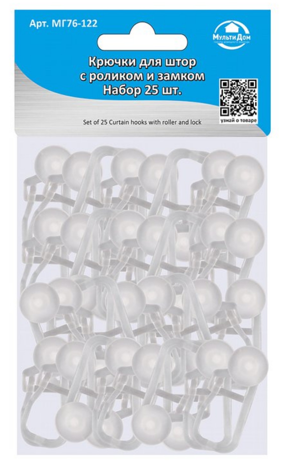 Крючки для штор с роликом и замком. Набор25 шт МГ76-122
