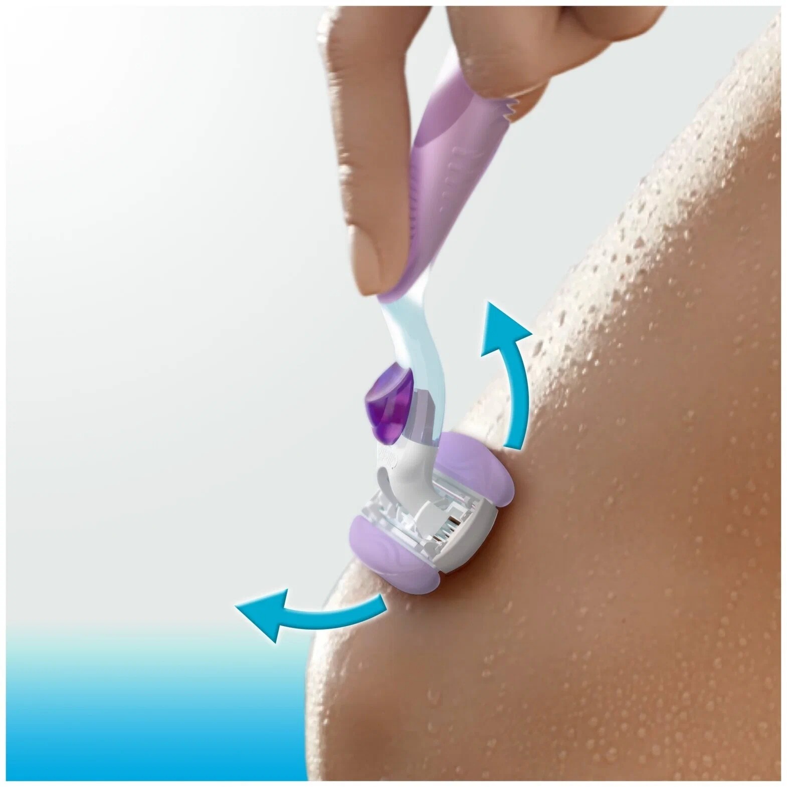 Благодаря трем повторяющим изгибы тела лезвиям и разглаживающим кожу защитным подушечкам вокруг лезвий бритва обеспечивают гладкое и чистое бритье одним движением.