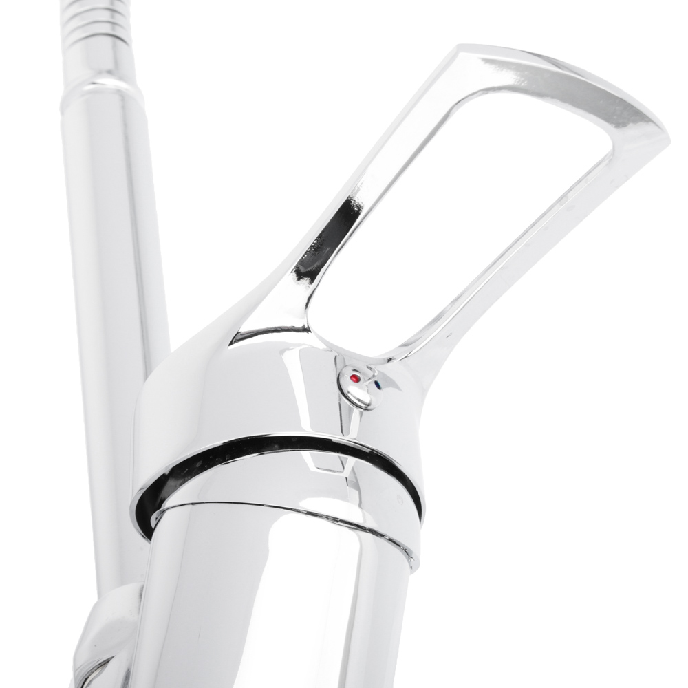 Смеситель для кухни с гибким изливом и керамическим картриджем диаметром 40 мм выполнен в классическом хромированном дизайне и изготовлен из прочного цинкового сплава.