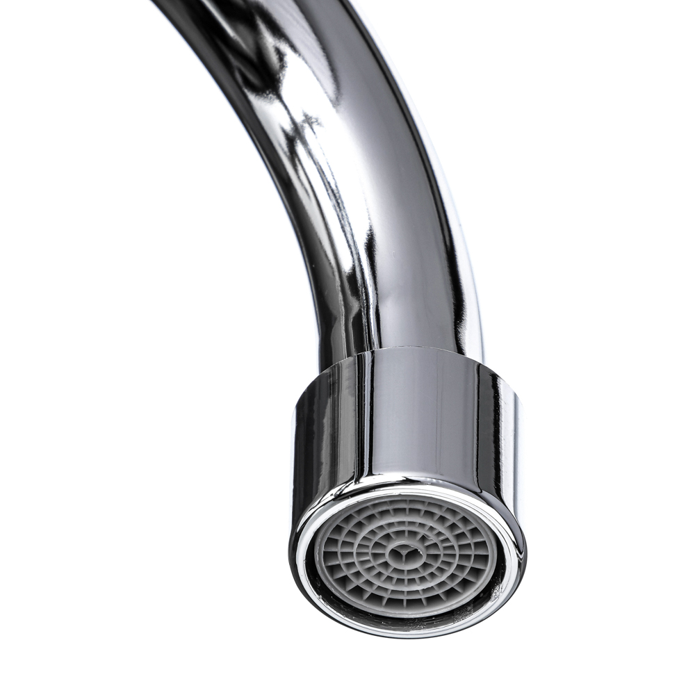 Поворотный излив: поворачивается в стороны - удобно, если нужно сложить в мойку посуду или поставить кастрюлю.