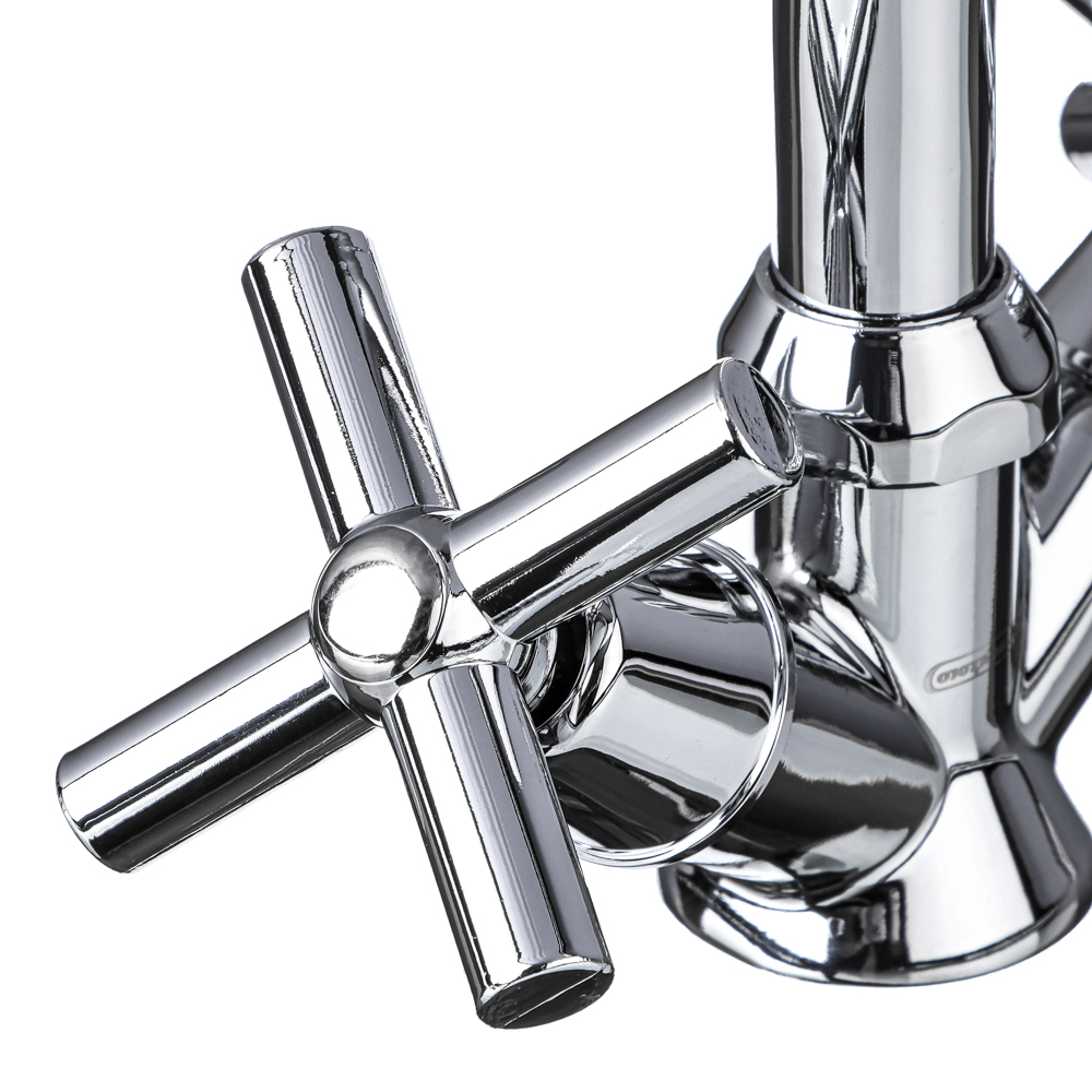 Двухвентильный, керамическая кран-букса: легко заменить, регулирует воду вполоборота.