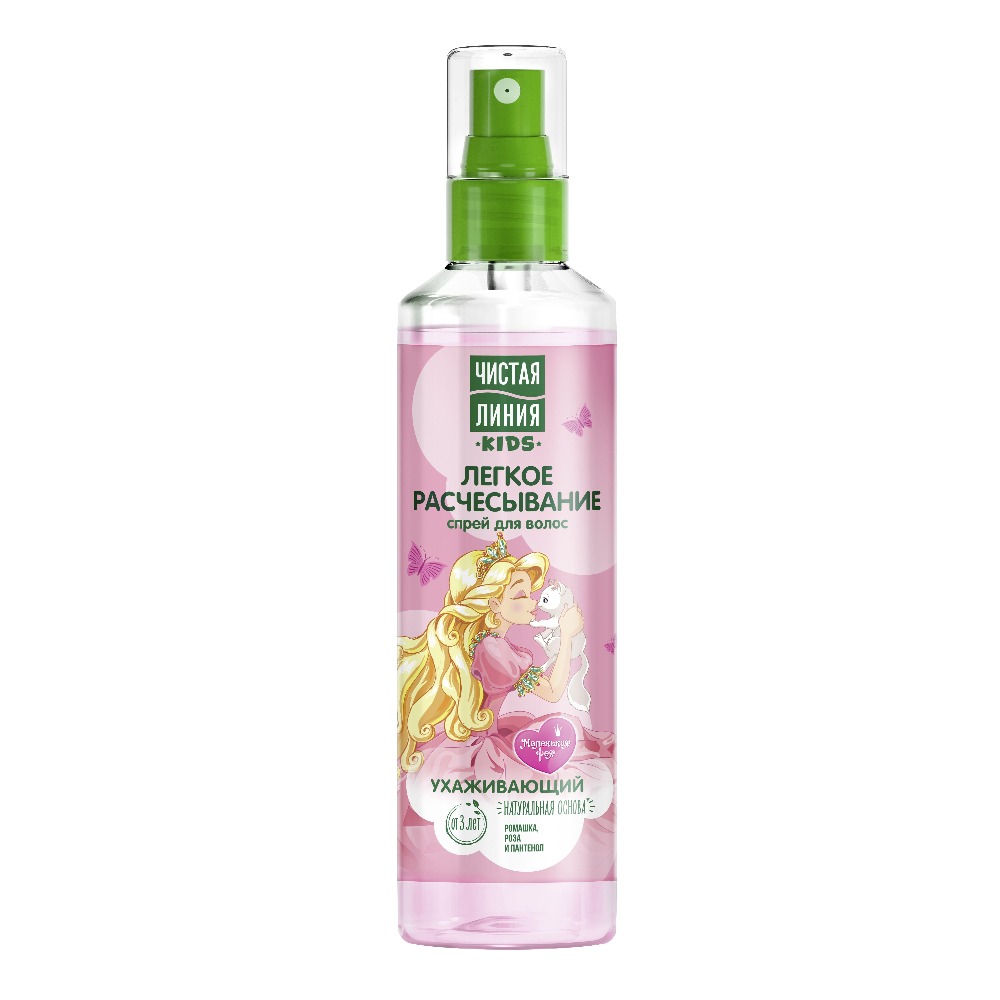 Спрей для волос «Легкое расчесывание от 3 лет» Kids от бренда Чистая линия всего за пару мгновений распутает даже самые строптивые детские локоны.