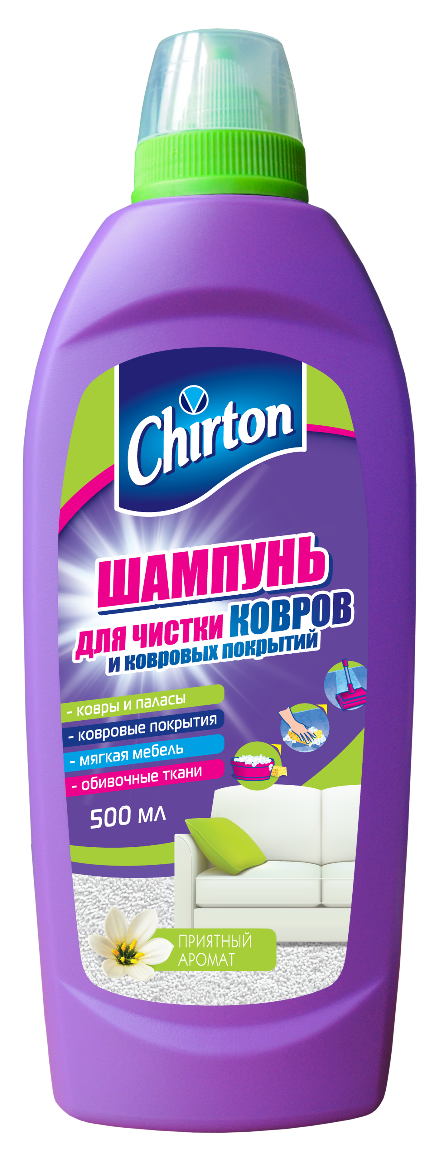 Шампунь для ковров "Чиртон" предназначен для чистки любых видов ковров и ковровых покрытий из шерсти, хлопка, синтетических материалов и т.д.
