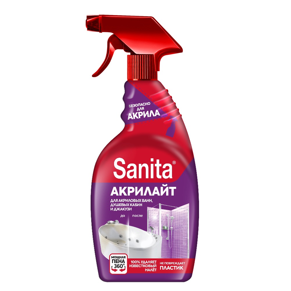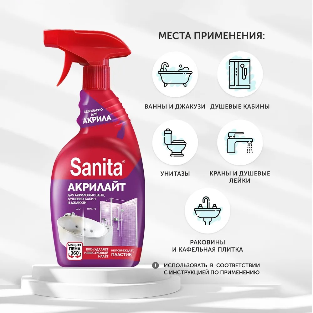 Средство для удаления известкового налета SANITA (Санита) "Акрилайт" предназначено для поддержания безупречной чистоты ванной комнаты и сантехники.