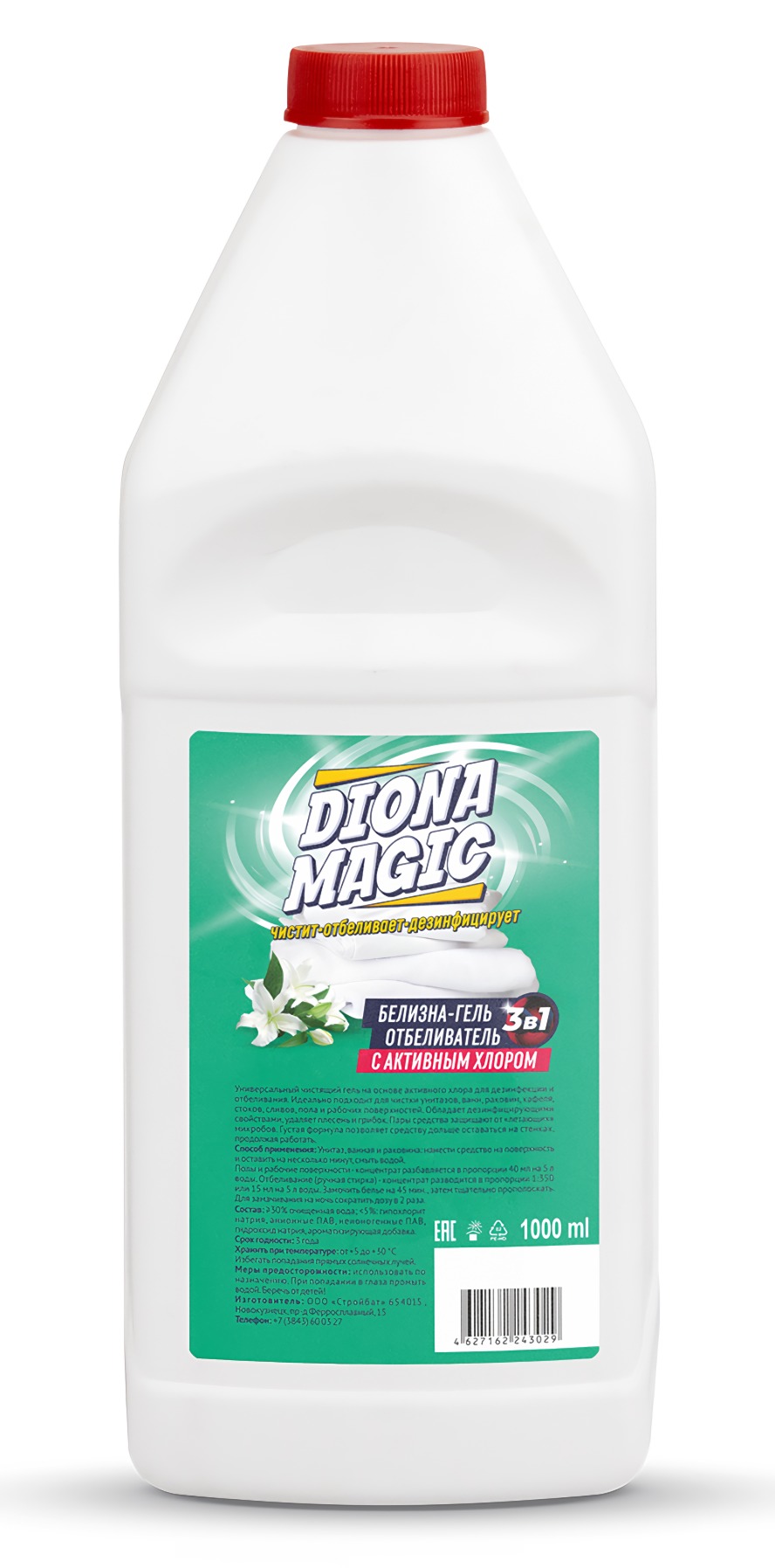 Универсальный белизна гель отбеливатель Diona (Диона) 3в1 на основе активного хлора идеально подходит для чистки, дезинфекции и отбеливания унитазов, ванн, раковин, кафеля, стоков, сливов, пола и рабочих поверхностей.