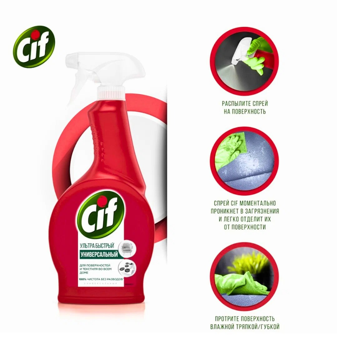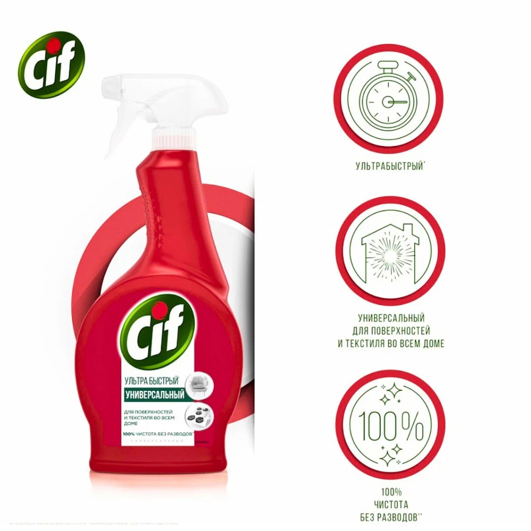 Спрей универсальный "Сиф" Ультра быстрый действует мгновенно, глубоко проникая в самое сердце загрязнений.