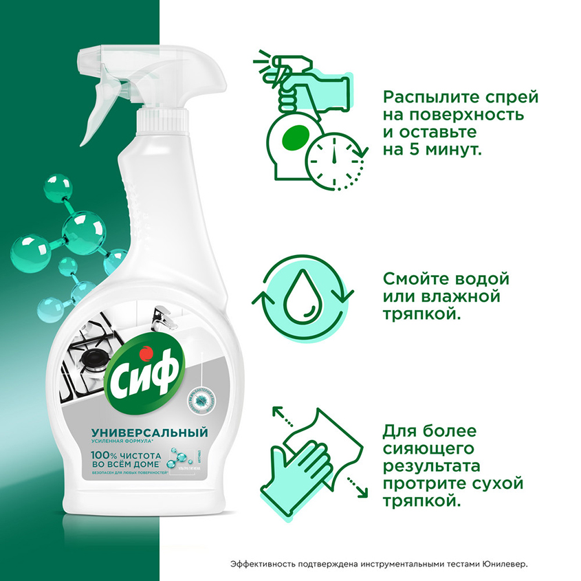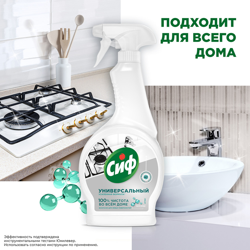 Универсальный чистящий спрей Cif (Сиф) антибактериальный убивает до 99,9 % бактерий на поверхностях в доме.