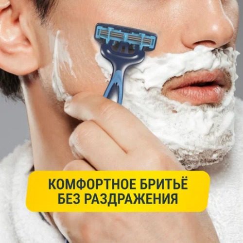 Сильно встряхните баллончик и, держа его вертикально, выдавите на кончик пальца немного пены для бритья .