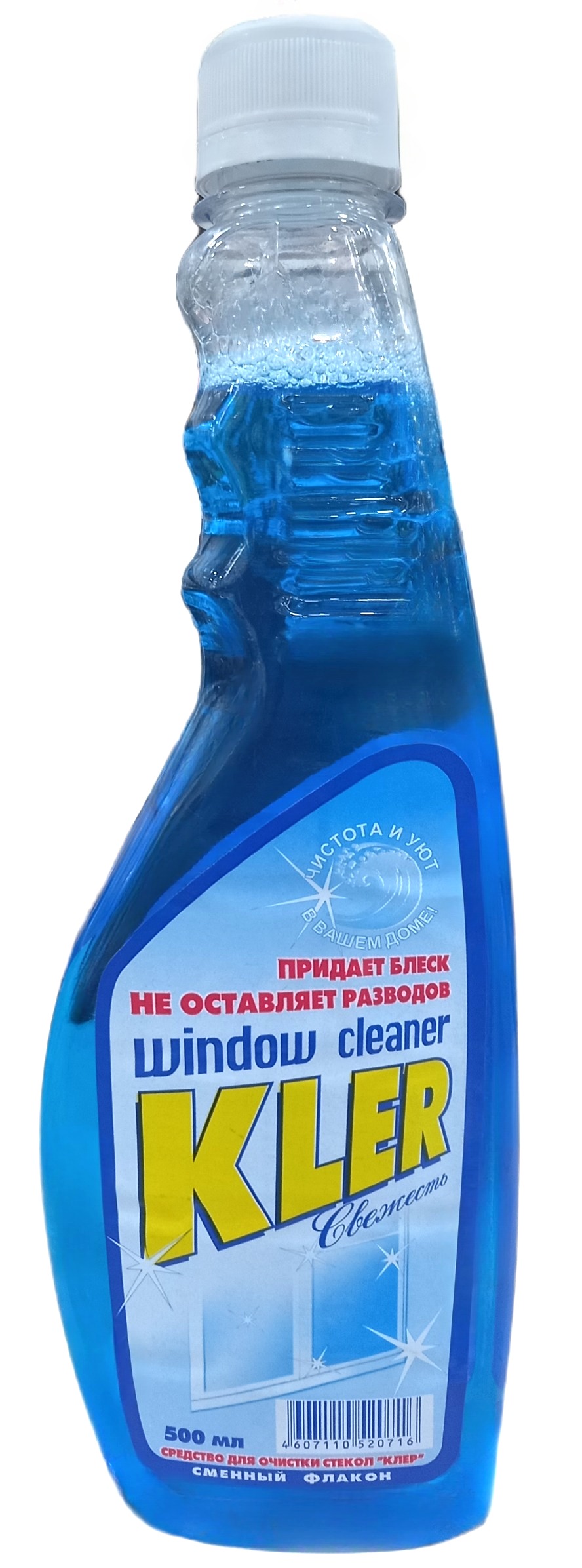 Средство KLER (Клер) "Свежесть" - универсальное средство для мытья стекол, зеркал, хрусталя, фарфора, кафеля, экранов телевизоров и любых других гладких поверхностей.
