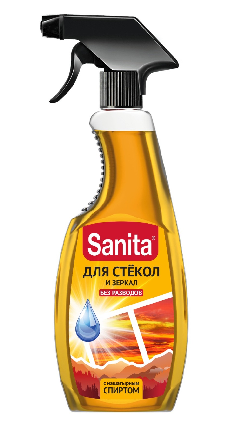 Спрей для очистки стекол Sanita (Санита) с нашатырным спиртом в составе рекомендован для мытья автомобильных стекол, витрин, окон, зеркал, кафеля, фаянса, наружных поверхностей холодильника.