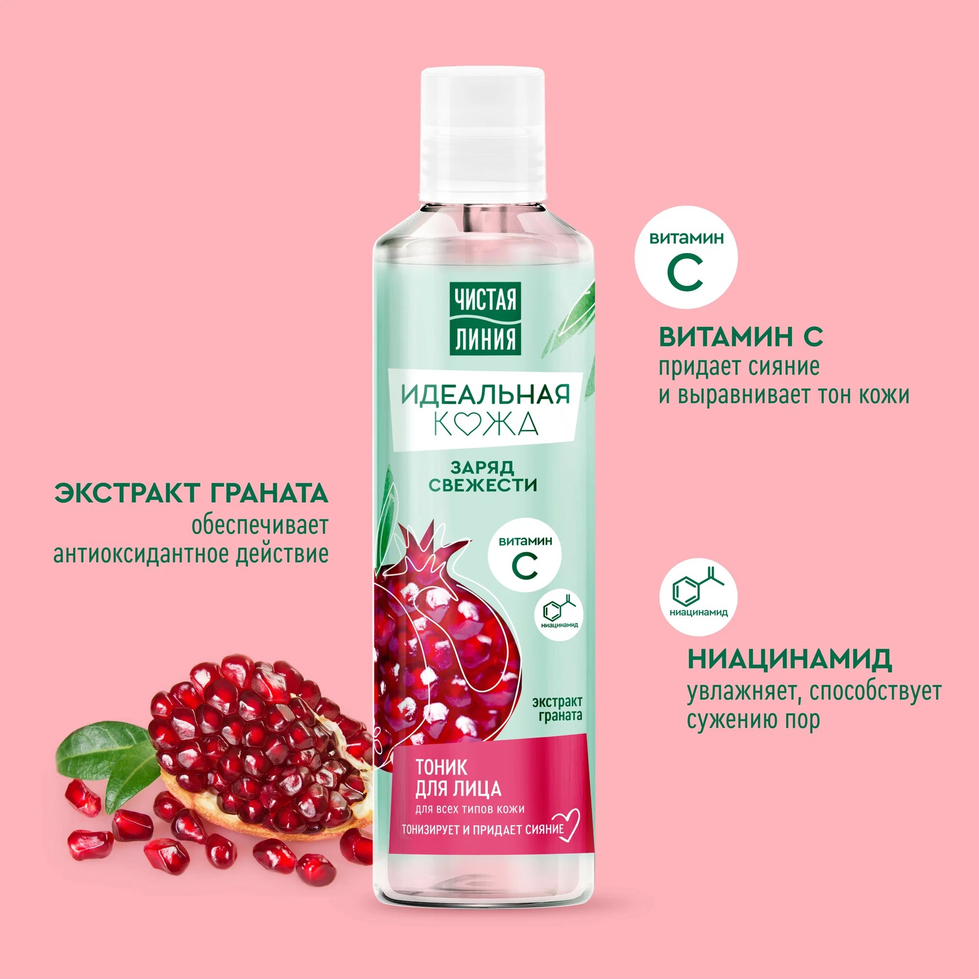 Для ежедневного ухода за лицом косметическая марка Чистая линия рекомендует тоник Идеальная кожа с экстрактом граната.