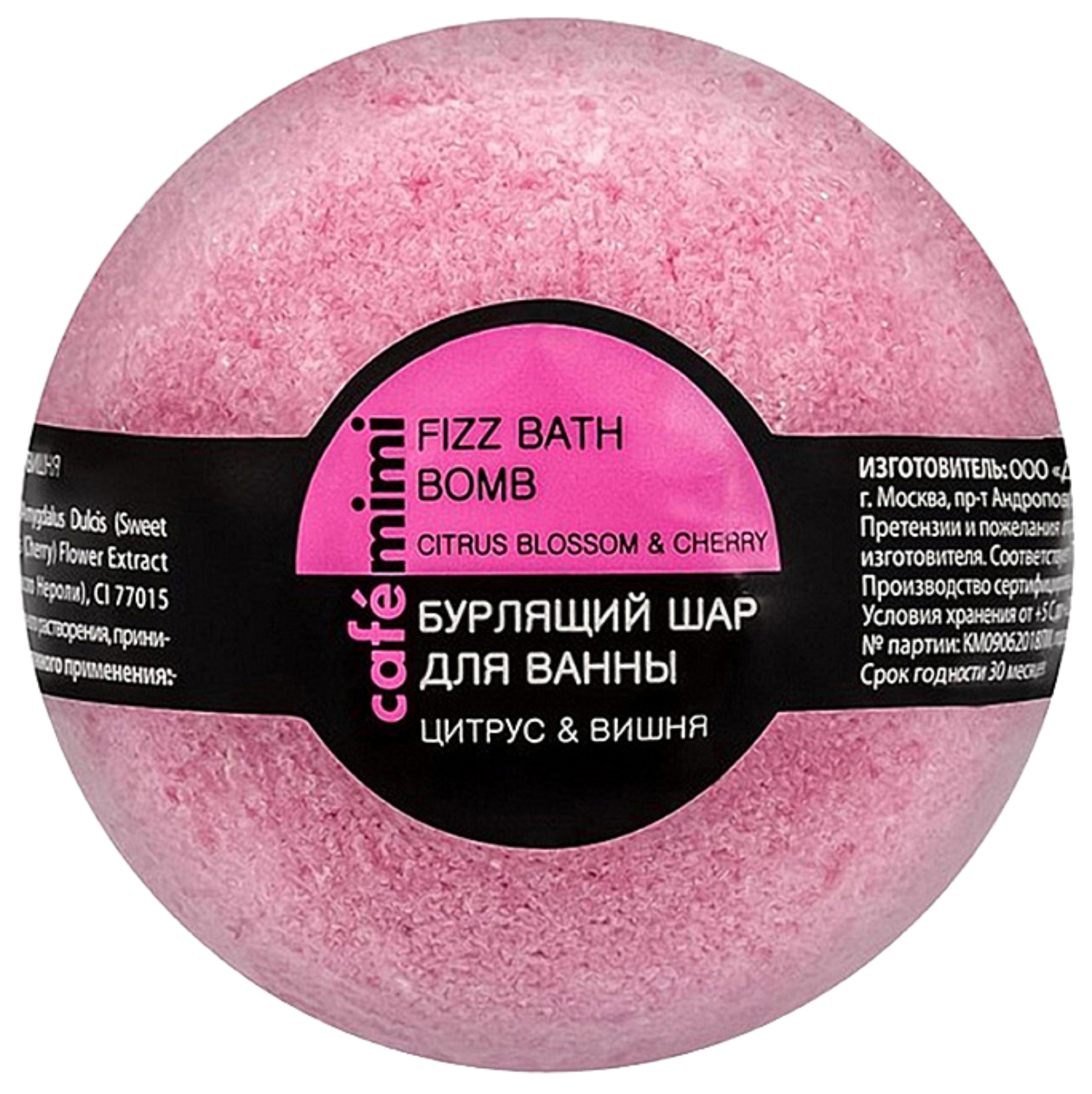 Бурлящий шар для ванны Cafe mimi (Кафе мими) "Цитрус и вишня" порадует тонизирующим ароматом, натуральными маслами и экстрактами.