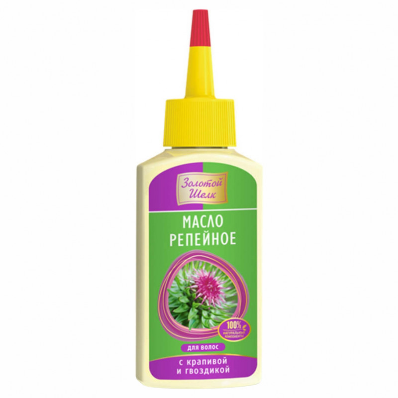 Репейное масло с фитокомплексом из масел крапивы, гвоздики и кукурузы и витамином Е снимает сухость и зуд кожи головы, предупреждает появление перхоти и способствует ускорению роста волос.