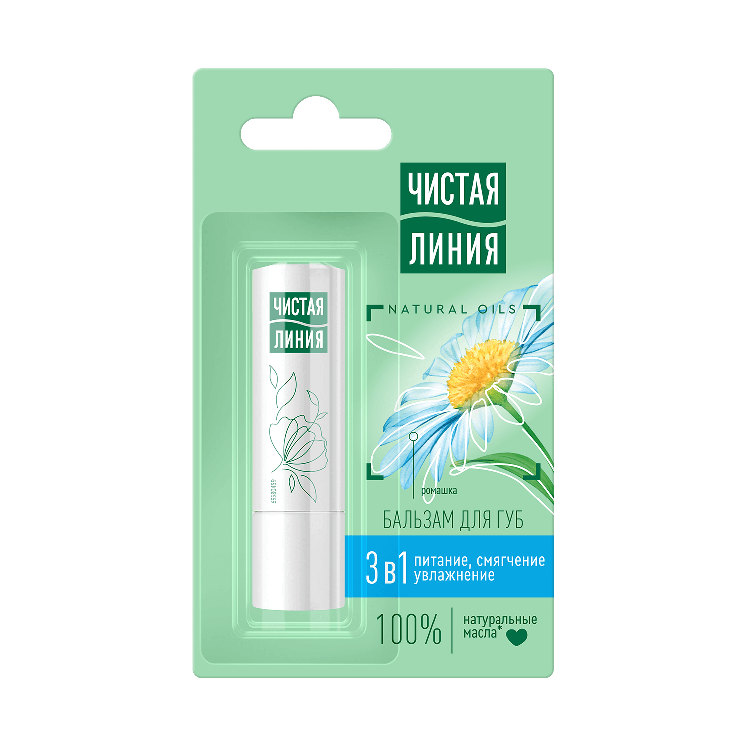 Бальзам Чистая линия для губ 3в1 питание,увлажнение,смягчение ромашка 4гр