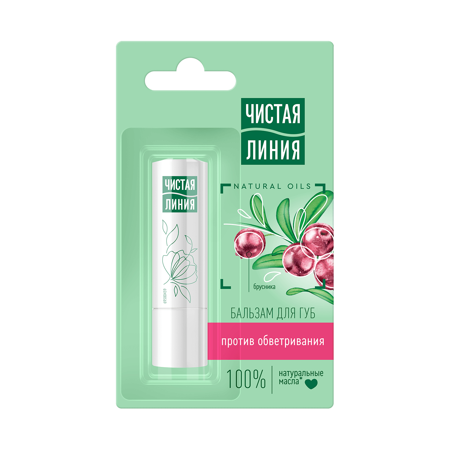 Чистая линия бальзам для губ против обветривания брусника 4гр
