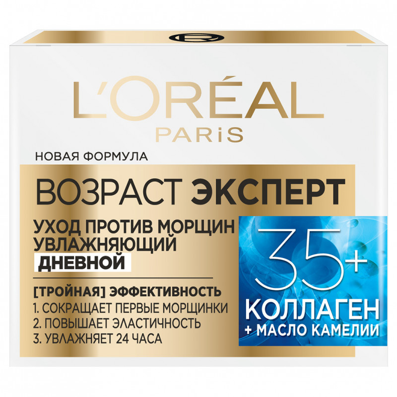 Дневной уход LOreal (Лореаль) "Возраст Эксперт 35+" сокращает морщины, повышает эластичность кожи и увлажняет 24 часа.