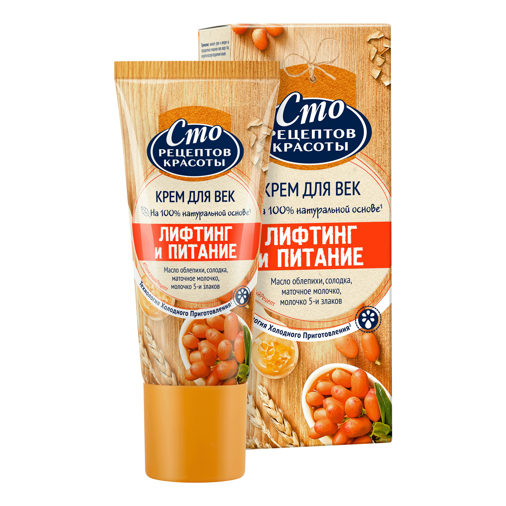 Крем для век Сто Рецептов Красоты Лифтинг и питание способствует уменьшению темных кругов и питанию нежной кожи вокруг глаз.