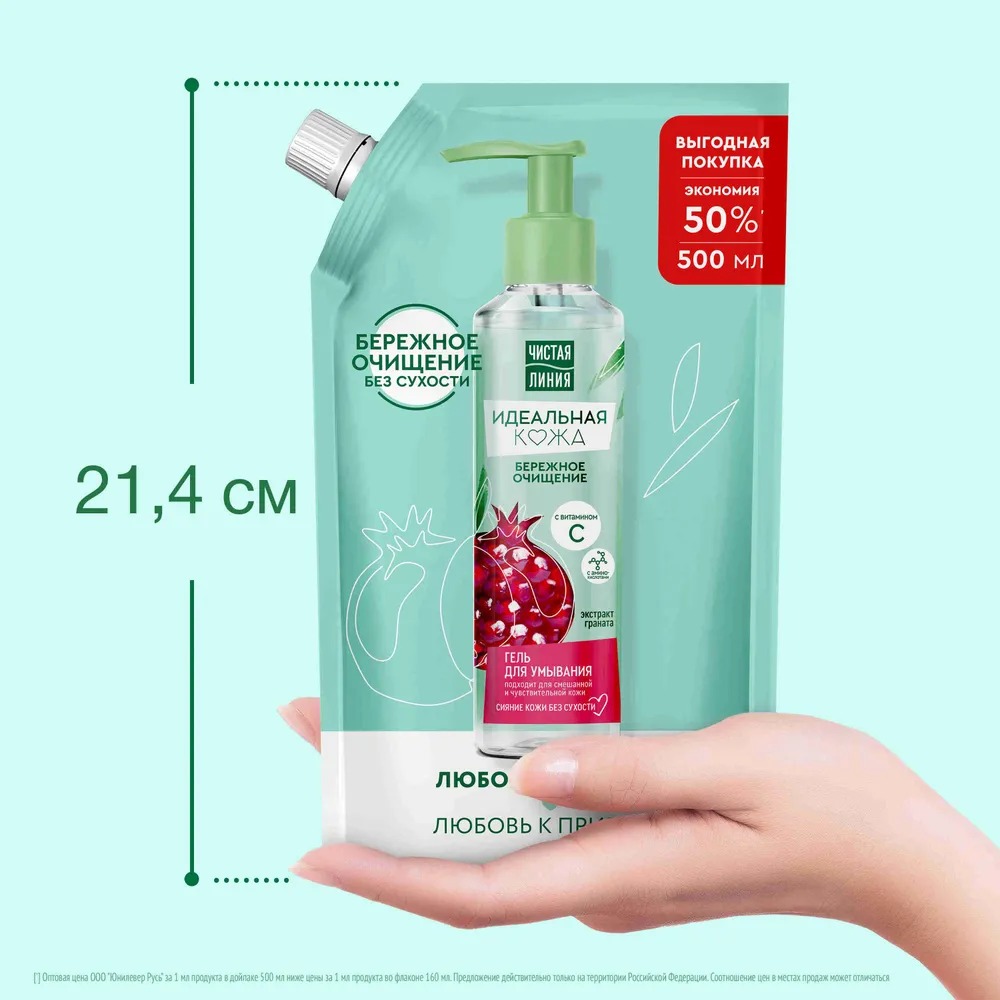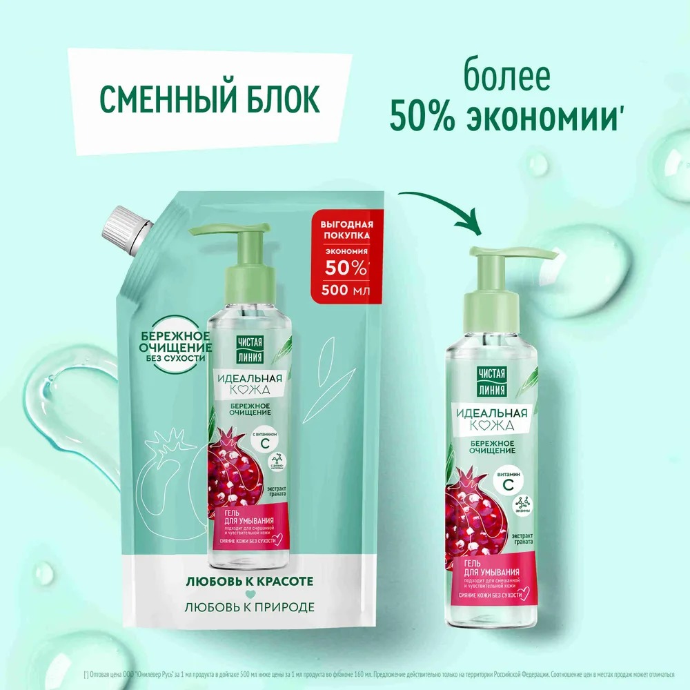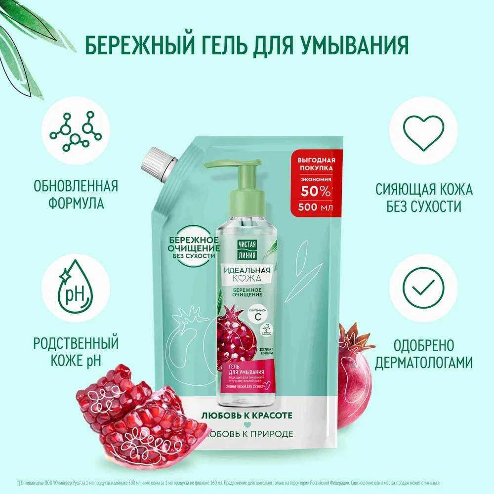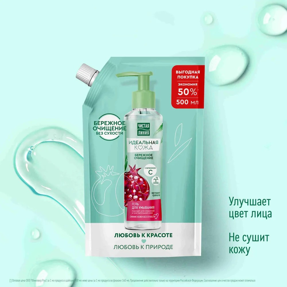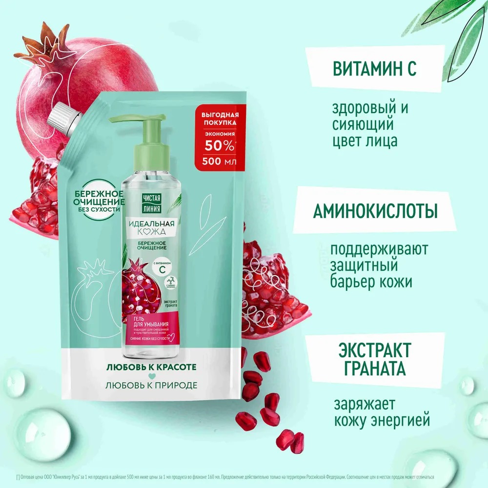 Чистая линия Идеальная кожа гель для умывания 500мл дой-пак