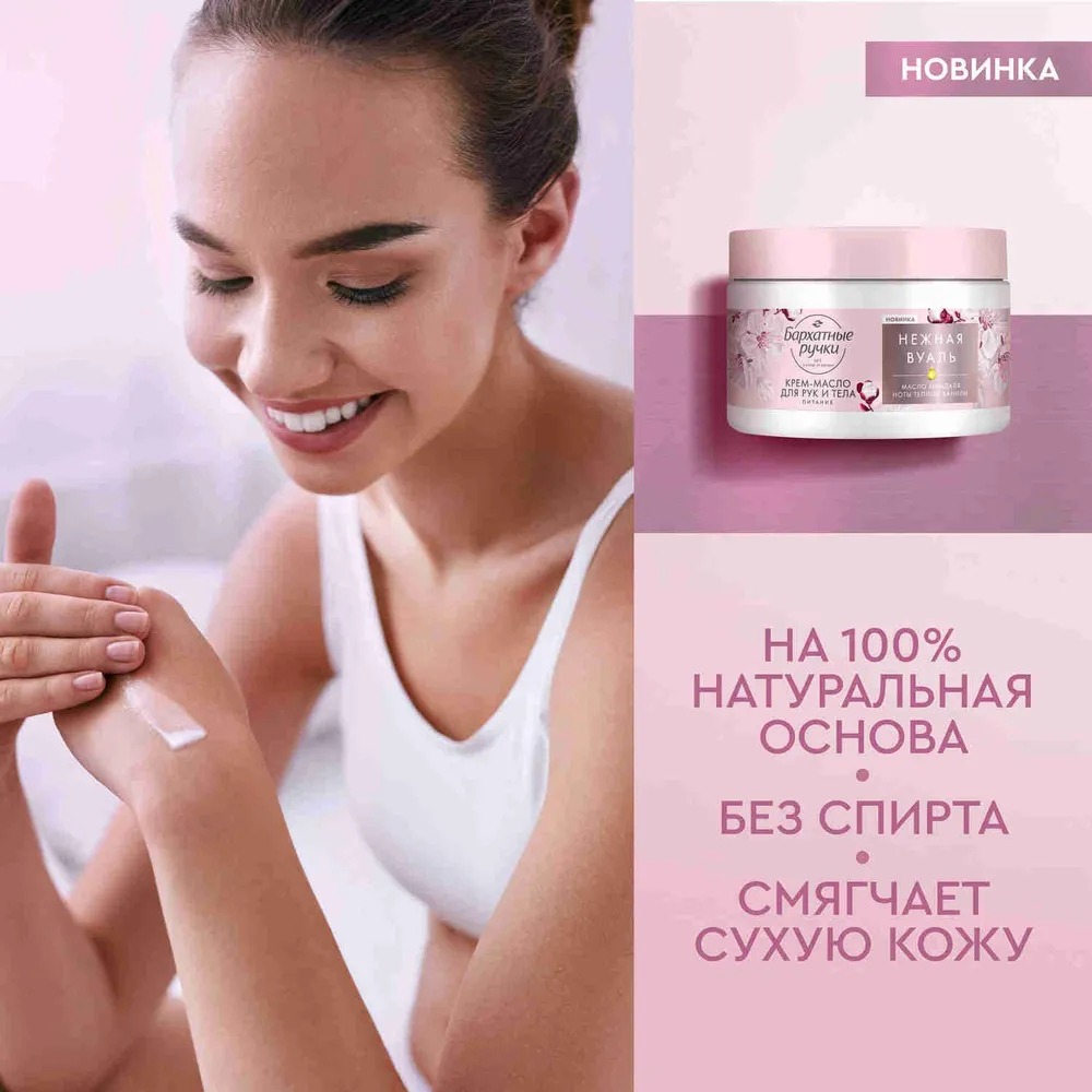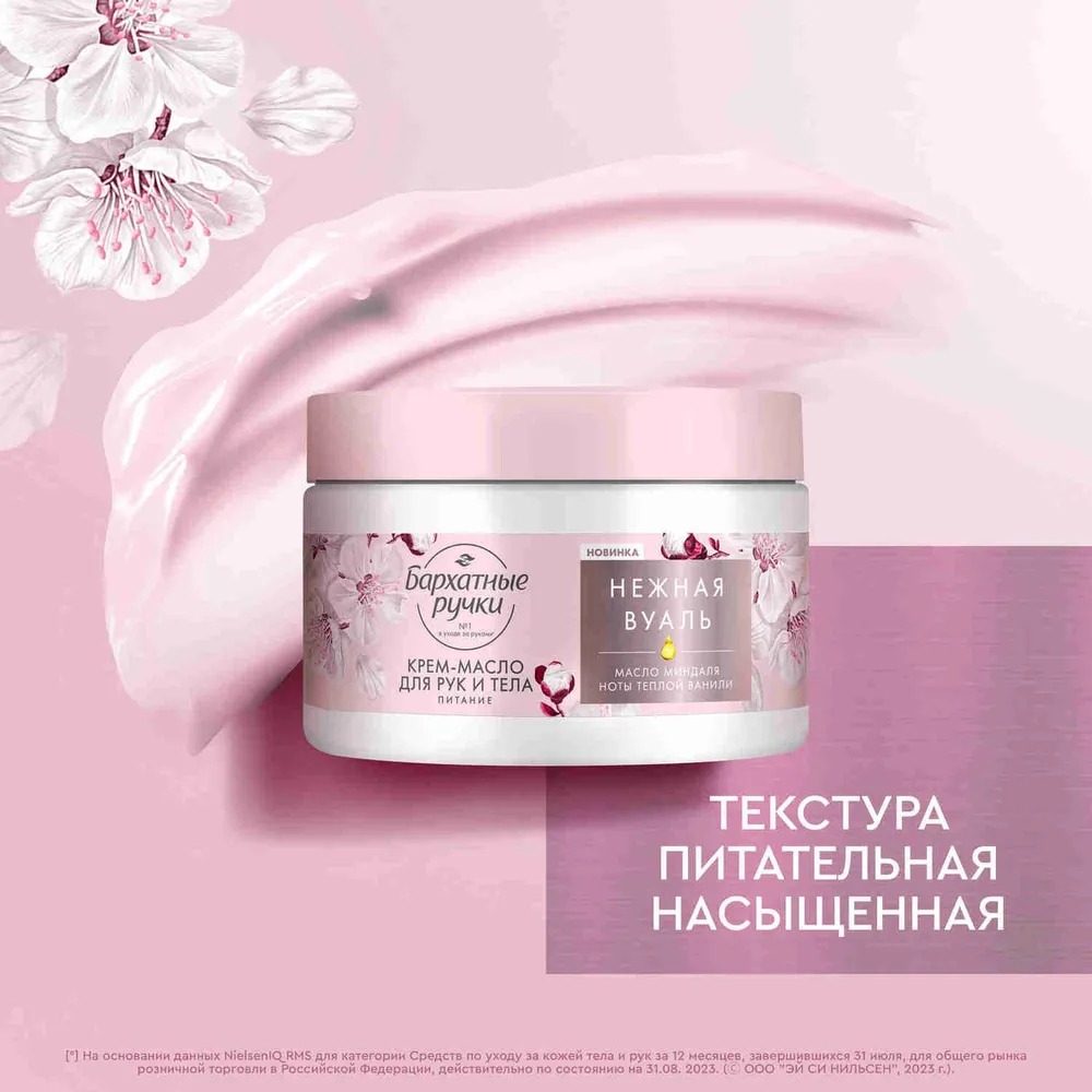 Эксперт №1 в уходе за руками – бренд Бархатные ручки – представляет бьюти-новинку – парфюмированный крем баттер для рук и тела Питание Нежная вуаль.