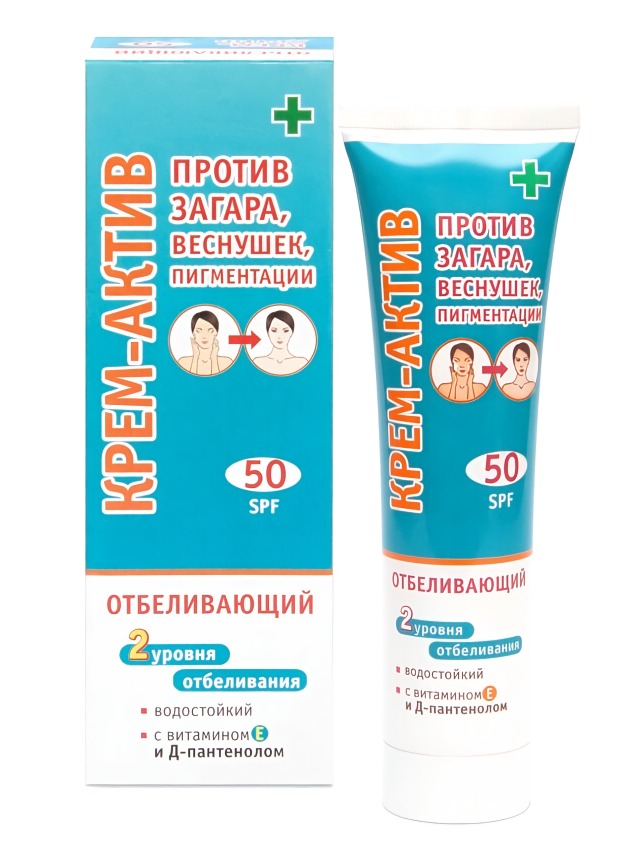 Крем-актив против загара веснушек и пигментации отбеливающий 2 уровня отбеливания SPF-50 100 мл