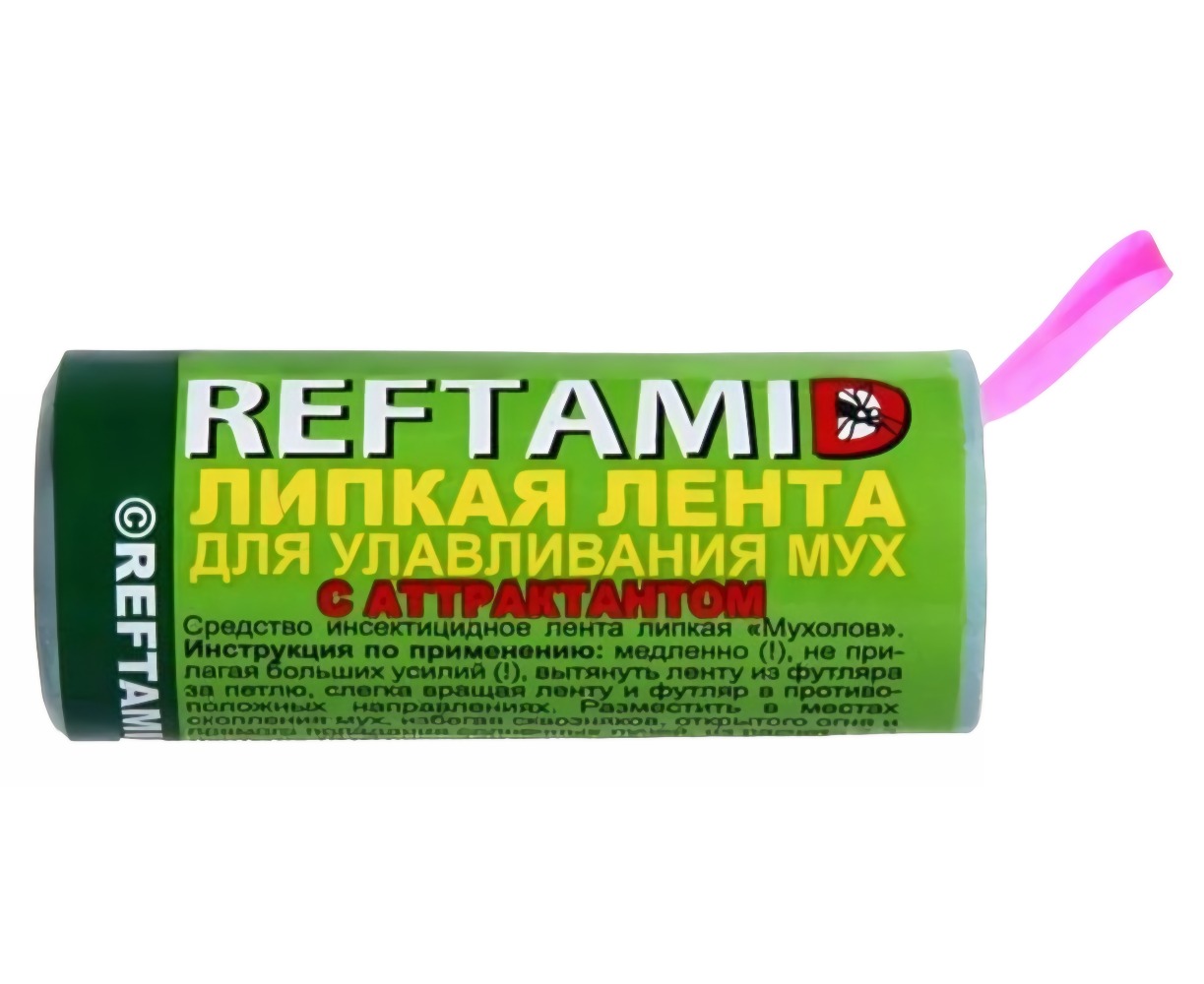Липкая лента "Рефтамид" — наиболее простое, удобное и эффективное средство борьбы с мухами в помещениях.