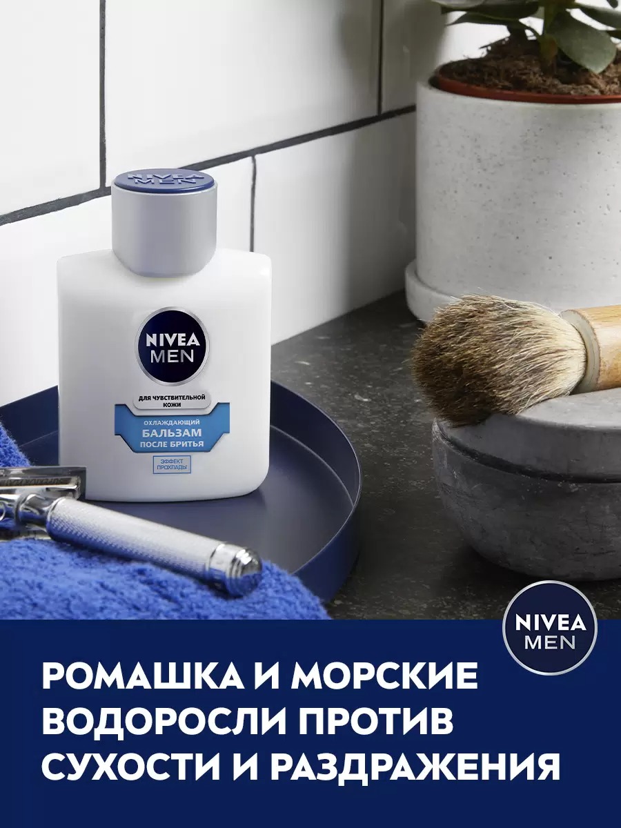 Бальзам после бритья Охлаждающий от NIVEA MEN без спирта и ментола в составе разработан специально для чувствительной мужской кожи склонной к раздражению и шелушению. Освежает и успокаивает кожу, имеет приятный мужской аромат. Быстро впитывается без ощущения жирной пленки на лице, не оставляет жирного блеска.