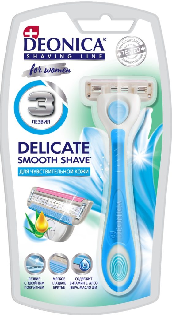 Женская безопасная бритва Deonica For women (Деоника для женщин) 3 лезвия легко срезает волоски, делая бритье максимально комфортным даже для самой чувствительной кожи.