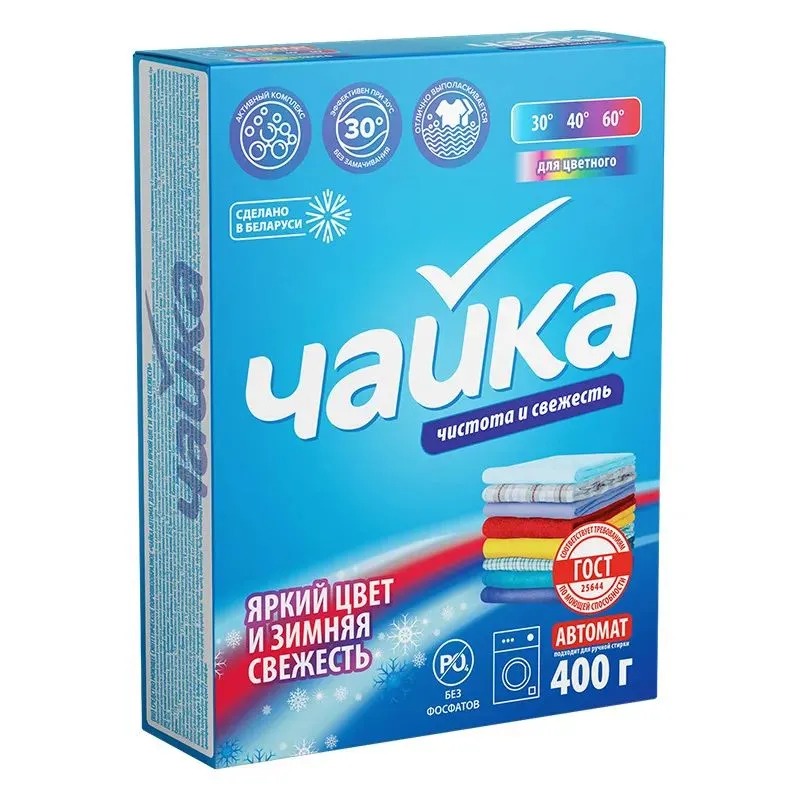 Стиральный порошок Чайка "Зимняя свежесть" - это универсальное средство для стирки всех видов цветного белья.