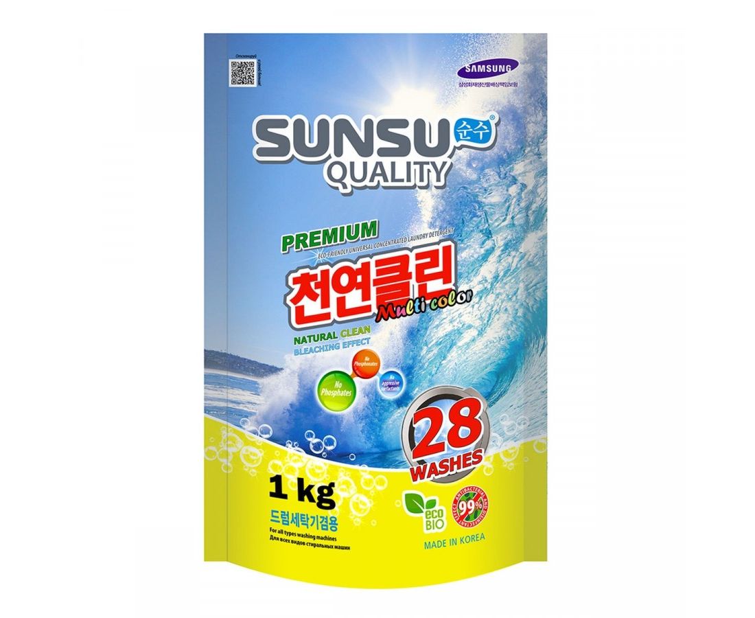 Sunsu-Q Бесфосфатный универсальный концентрированный порошок для стирки цветного белья 1кг