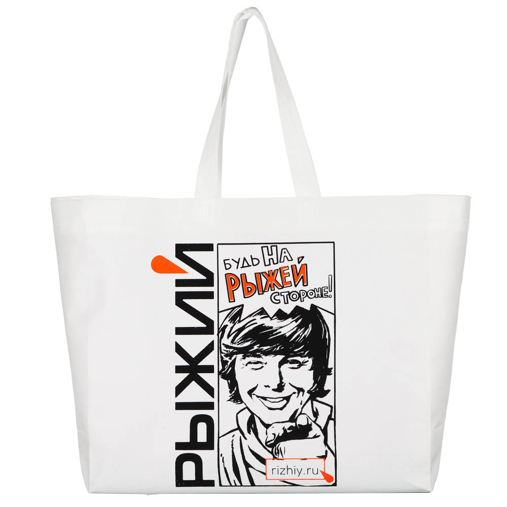 Сумка-шоппер Рыжий 40х45х16 см белого цвета с модным принтом в технике трафаретной печати – это удобный повседневный аксессуар для покупок.